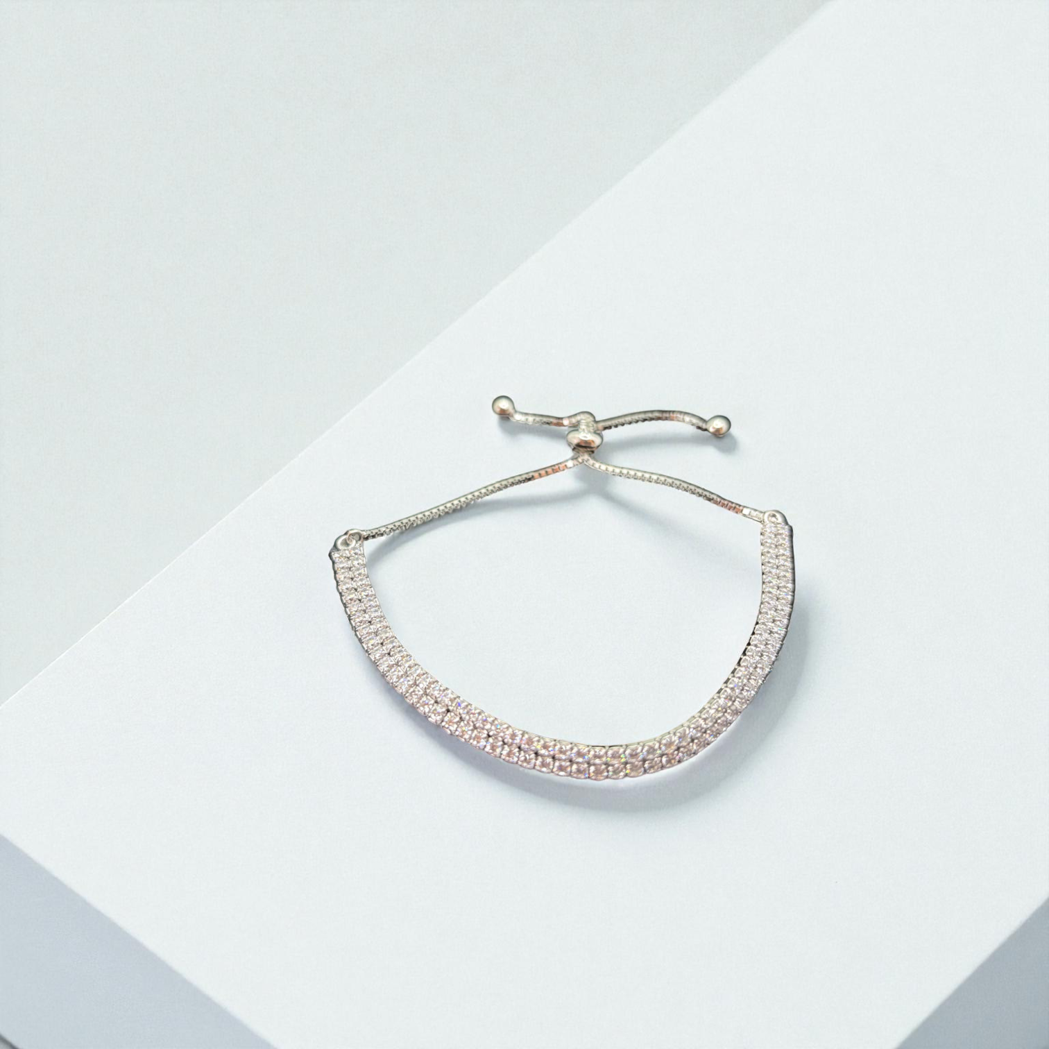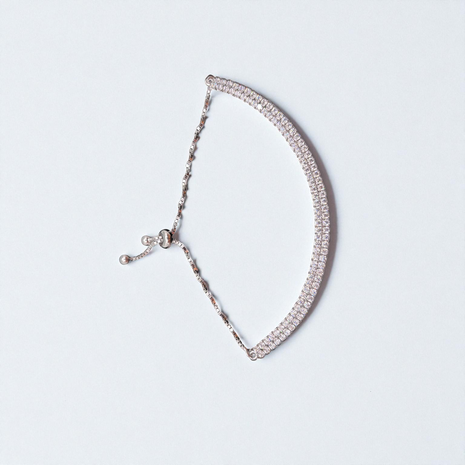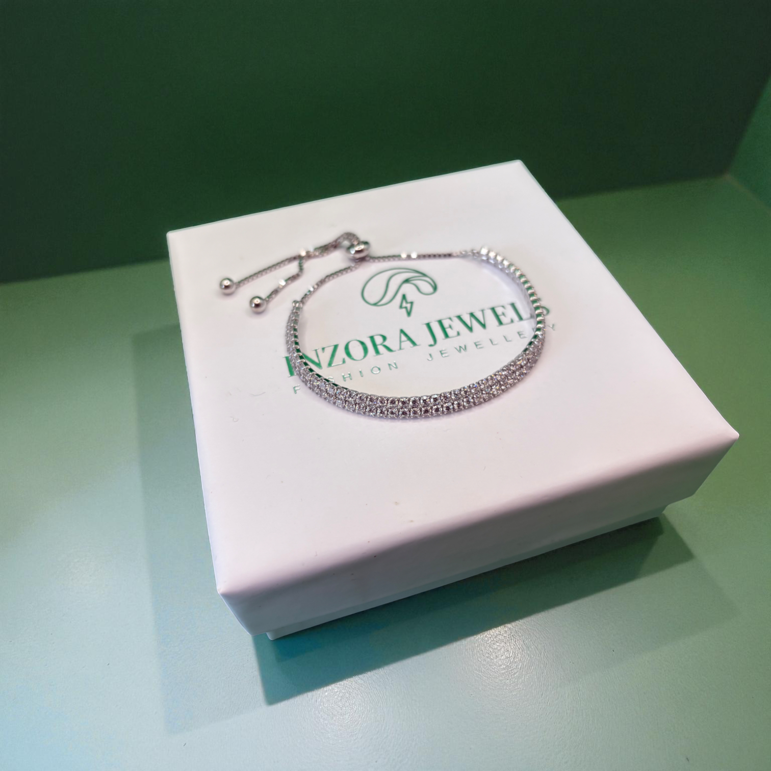 This elegant silver bracelet features a classic, minimalist design encrusted with rows of sparkling stones, offering a timeless accessory for any occasion. The adjustable chain ensures a comfortable fit for different wrist sizes, making it suitable for both daily wear and special events. Crafted with high-quality 925 sterling silver, the bracelet stands out for its refined shine and durability, blending subtle luxury with practicality.